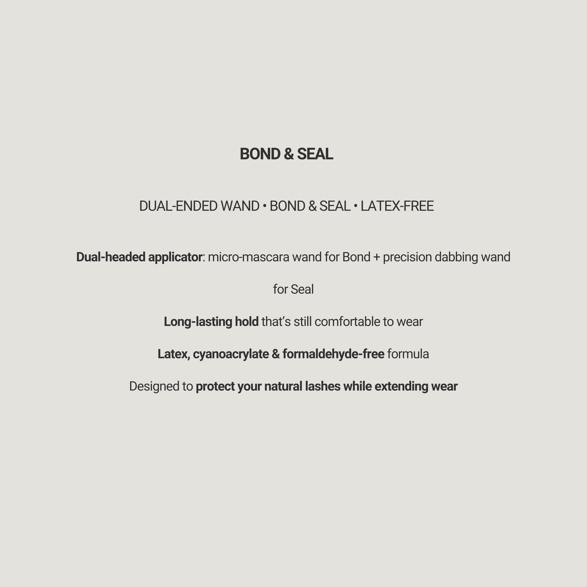 On one end, the Bond features a fine micro-mascara wand for precise application at the lash roots, helping clusters grip in place quickly and cleanly. On the other end, the Seal offers a soft brush-and-dab tip, designed to remove tackiness and add a water-resistant layer that extends wear. Together, they make DIY lashes easier, safer, and longer-lasting.